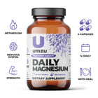 DAILY MAGNESIUM by UMZU is an unmatched magnesium formula containing 3 of the most bioavailable forms of magnesium: Aquamin® (from seawater), Magnesium Bisglycinate Chelate (Albion®), and Magnesium Gluconate.